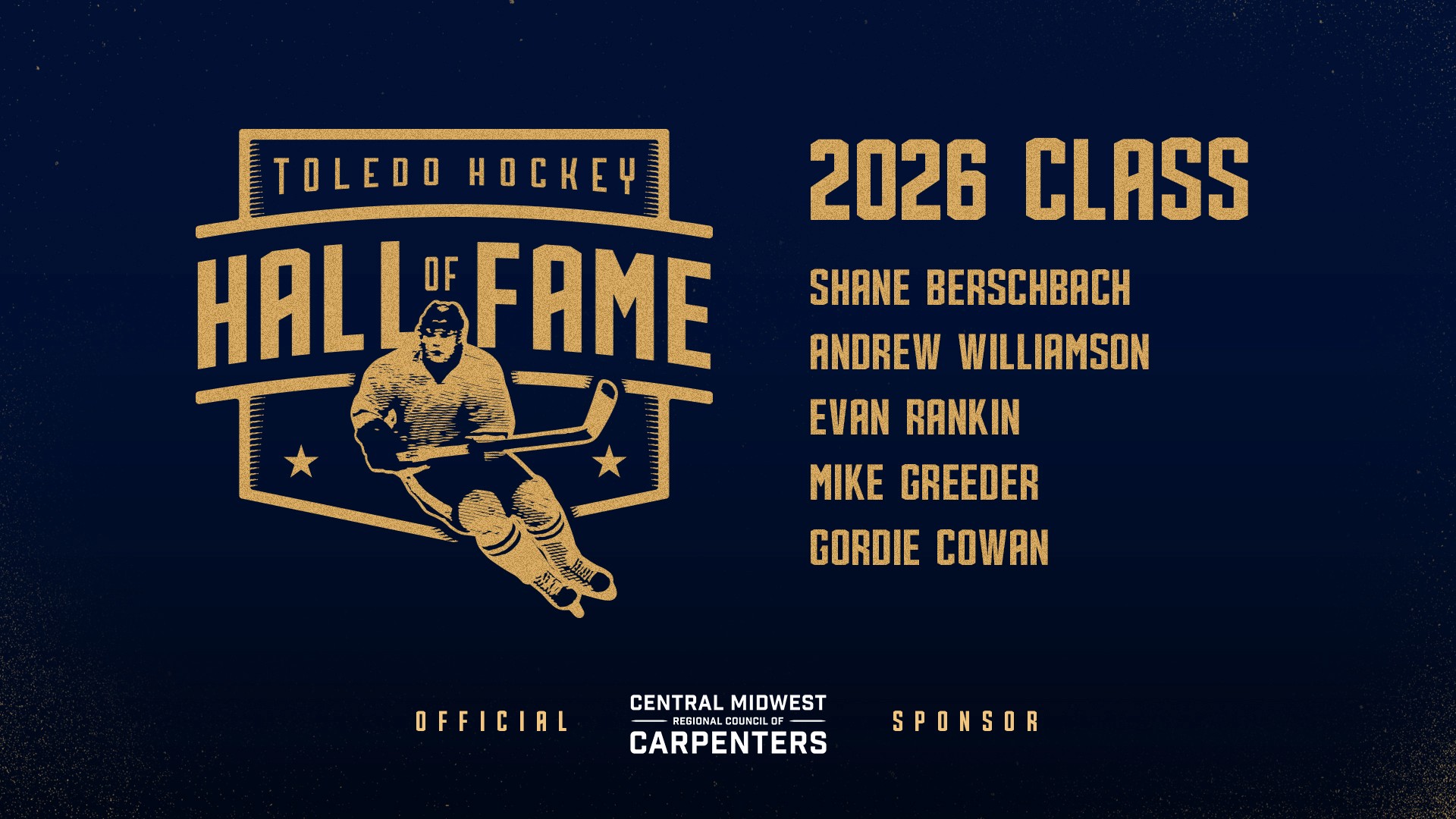 Join us as the Toledo Walleye proudly induct the 2026 Toledo Hockey Hall of Fame class: Gordie Cowan, Mike Greeder, Andrew Williamson, Evan Rankin, and Shane Berschbach.