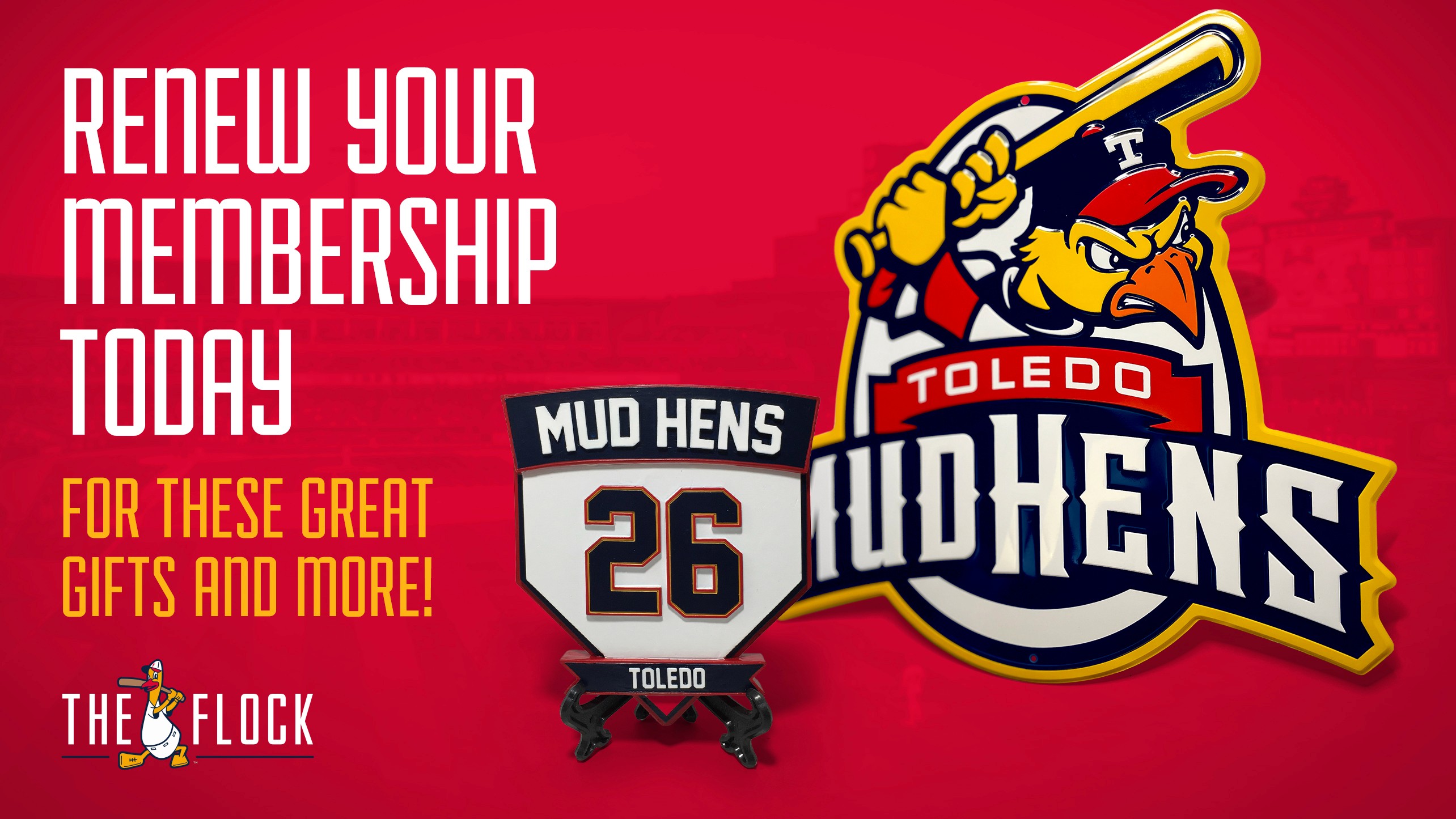 We want you back for our 2026 season. Renew your Ticket Plan today to guarantee your seat and all the awesome perks that come with a Flock Membership, including gifts like our exclusive 2026 Mud Hens polyresin sign with stand (pictured above).
